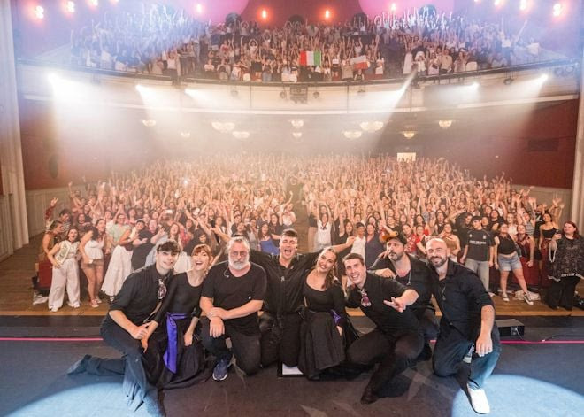 El último tramo del concierto ha pasado como un torbellino de cierzo, con una supervitaminada “Me sabe mal” que ha cantado en la platea –locurón– antes de pasar a la tierna “Nuestra forma de hablar” –con los fans blandiendo estrellas de cartulina y Marcel Bagés clavando un solo de guitarra en onda Jonny Greenwood de Radiohead– y la versión de sus paisanos Amaral –“Toda la noche”–, que estaban entre el público. Antes de abordar “Últimamente” ha subido al escenario a una emocionadísima muchacha con la que ha dado pautas a sus fans para que interpretaran la melodía principal del tema, y el público la ha seguido entonando después de que los músicos hicieran lo suyo, neutralizando el ritual del bis y llevando en volandas a un Juanjo Bona pletórico que ha desbordado sentimiento en “La magallonera” y apurado la última reserva de energía con ese hit ya imprescindible –en homenaje a las trabajadoras del Colegio Mayor Mendel que le acogió cuando aterrizó en la capital como otro universitario anónimo– que es “Mis tías”. Apoteosis. Y todo esto, como él mismo ha recordado henchido de orgullo, cantando jotas.